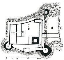 “The inner courtyard is covered in the rubble of the various ceremonial halls, chambers, weapon and storage rooms, kitchens, underground vaults, cellars and corridors, which have collapsed. It is thus impossible to say how everything used to be arranged.”