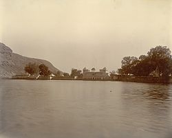 Kipling named the house Naulakha, in honour of Wolcott and of their collaboration, and this time the name was spelled correctly.[16] From his early years in Lahore (1882–87), Kipling had become enamoured with the Mughal architecture,[37] especially the Naulakha pavilion situated in Lahore Fort, which eventually became an inspiration for the title of his novel as well as the house.[38] The house still stands on Kipling Road, three miles (5 km) north of Brattleboro in Dummerston, Vermont: a big, secluded, dark-green house, with shingled roof and sides, which Kipling called his "ship", and which brought him "sunshine and a mind at ease."[16] His seclusion in Vermont, combined with his healthy "sane clean life", made Kipling both inventive and prolific.
