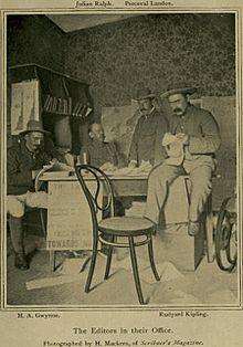 Although his journalistic stint was to last only two weeks, it was Kipling's first work on a newspaper staff since he left The Pioneer in Allahabad more than ten years earlier.[16] At The Friend, he made lifelong friendships with Perceval Landon, H. A. Gwynne, and others.[49] He also wrote articles published more widely expressing his views on the conflict.[50] Kipling penned an inscription for the Honoured Dead Memorial (Siege memorial) in Kimberley.