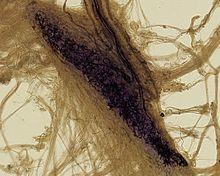 This spindle-shaped receptor is sensitive to skin stretch, and contributes to the kinesthetic sense of and control of finger position and movement.[3] They are at the highest density around the fingernails where they act in monitoring slippage of objects along the surface of the skin, allowing modulation of grip on an object.