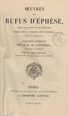 - ^ "Rufus Ephesius" entry in Dictionary of Greek and Roman Biography and Mythology, page 669. Volume 3. (1869)