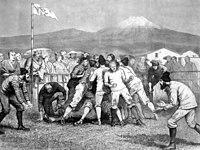 The first recorded instance of a team being established and rugby being played in Japan was in 1866 with the founding of the Yokohama Foot Ball Club.[6] The rules committee of the club consisted of notable Rugby School, Radley and Winchester College alumni including Capt. Charles Rochefort and Capt. Robert Blount of the 20th (The East Devonshire) Regiment of Foot and Royal Navy Lieutenant Lord Walter Kerr. Other Rugby School alumni soon followed including George Hamilton who became captain of the Yokohama team. Games, mainly between service personnel, were played on the Garrison Parade Ground in Yamate, Yokohama.[7]