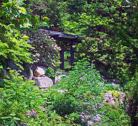 After his wife's death, Russel Wright retired to his 75-acre (300,000 m2) estate, Manitoga in Garrison, New York, building an eco-sensitive Modernist home and studio called Dragon Rock surrounded by extensive woodland gardens. It is on the National Register of Historic Places and a U.S. Department of Interior designated National Historic Landmark. Manitoga is open to the public, operated by the non-profit Russel Wright Design Center, with tours and hiking trails. [4]