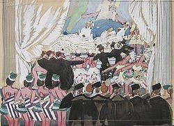 Branching out from magazine illustration, Patterson worked on Broadway on a number of productions in various creative capacities: The Gang's All Here (1931) as Costume Designer; Ballyhoo of 1932 (1932) as Costume Designer, Director and Scenic Designer; Hold Your Horses (1933) as Costume Designer and Scenic Designer; Fools Rush In (1934) as Scenic Designer; Ziegfeld Follies of 1934 as Costume Designer; and George White's Scandals (1936) as Scenic Designer.[6]