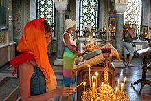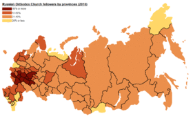 - ^ Because the ROC does not keep any formal membership records the claim is based on public polls and the number of parishes. The actual number of regular church-goers in Russia varies between 1% and 10%, depending on the source. However, strict adherence to Sunday church-going is not traditional in Eastern Orthodoxy, specifically in Russia.
