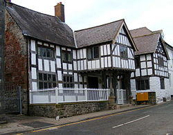 Nantclwyd y Dre (previously known as Tŷ Nantclwyd), in Castle Street, was built about 1435 by a local merchant Gronw ap Madoc. The building was sold to the county council in 1982, restored from 2004, and opened to the public in 2007. It contains seven rooms which have been restored to represent various periods in the building's history. Visitors can also observe a colony of Lesser horseshoe bats in the attic rooms.[19]
