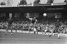 In 1978, Gullit signed professionally for HFC Haarlem under coach and former West Bromwich Albion player Barry Hughes. Gullit made 91 league appearances for Haarlem, scoring 32 goals. He made his debut for the club at just 16 years old, becoming at the time the youngest player in the history of the Eredivisie.[12] In his first year at Haarlem, the club finished bottom of the Eredivisie, but bounced back the following season winning the Eerste Divisie. Gullit was named as the best player in the Eerste Divisie that season.[13] In the 1981–82 season, Gullit was in fine form as Haarlem finished fourth and qualified for Europe for the only time in their history. In that same season, Gullit scored the goal he would later consider his finest: "Playing against Utrecht I went past four defenders and then the goalkeeper, and scored. It was an unforgettable goal for me."[14] Hughes was so impressed with the young Gullit that he described him as the "Dutch Duncan Edwards".[13]
