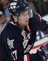 The 2004–05 NHL lockout, which cancelled the full 2004–05 NHL season, forced Kesler to spend the entire season with the Moose.[27] With Manitoba, Kesler emerged as one of the Canucks' top prospects. Midway through the season, Kesler was named to the PlanetUSA All-Star team for the 2005 AHL All-Star Game where he helped PlanetUSA defeat Team Canada for the first time in five years.[28][29] Kesler finished third in team scoring with thirty goals and 57 points to be named the Moose's Most Valuable Player.[30] Kesler added an additional nine points in fourteen playoff games as the Moose advanced to the Western Conference finals before being swept by the Chicago Wolves.[31]