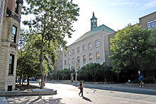 Initially, plans were made to house the institute entirely within the Toronto Normal School building, although rapid growth in student body population made such plans impossible. In order to accommodate the growing student body, work on the first building built specifically for the institute began in 1958; and was completed in 1963.[17] However, the completion of Kerr Hall resulted in the destruction of several buildings, including temporary barracks used during the Second World War;[18] and Toronto Normal School building excluding its portico façade.[19] A number of other buildings were later built surrounding the courtyard.[19]