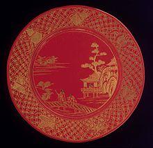 Ryukyuan lacquer, like lacquerwares from other parts of East and Southeast Asia, comes in a number of standard categories: painted lacquer, carved, incised and filled in with gold, painted with gold, and inlaid with mother-of-pearl. The use of mother-of-pearl in particular is a common feature of Ryukyuan lacquers, as is the use of particular shades of red, especially as a background. However, it is generally said that the primary distinguishing feature of Ryukyuan lacquers is simply that they "appear to be neither purely Chinese on the one hand nor purely Japanese on the other."[7]