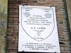 Società Podistica Lazio was founded on 9 January 1900 in the Prati district of Rome.[8] Until 1910, the club played at an amateur level until it officially joined the league competition in 1912 as soon as the Italian Football Federation began organising championships in the center and south of Italy, and reached the final of the national championship playoff three times, but never won, losing in 1913 to Pro Vercelli, in 1914 to Casale and in 1923 to Genoa 1893.