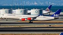 SAS AB (Scandinavian Airlines System Aktiebolag)[2] (OSE: SAS+NOK, Nasdaq Stockholm: SAS, SAS DKK), trading as SAS Group, is an airline holding company headquartered in the SAS Frösundavik Office Building in Solna Municipality, Sweden. It is the owner of the airlines Scandinavian Airlines and Scandinavian Airlines Ireland. SAS once owned 19.9% of the now defunct Spanish airline Spanair as well as shares in Estonian Air and Skyways Express. SAS Group is partially owned by the governments of Sweden and Denmark with a 14.82% and 14.24% holding, respectively. The remaining 70.92% is held by private shareholders, of which Foundation Asset Management owns 6.50%.[3] The company is listed on the Oslo Stock Exchange, the Stockholm Stock Exchange, and the Copenhagen Stock Exchange.