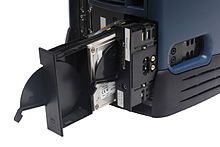 The O2 carries an UltraWide SCSI drive subsystem (Adaptec 7880). Older O2's generally have 4x speed Toshiba CD-ROMs, but any Toshiba SCSI CD-ROM can be used (as well as from other manufacturers, the bezel replacement however is designed to fit Toshiba design and also IRIX cannot utilize CD-DA mode other than Toshiba). Later units have Toshiba DVD-ROMs. The R5000/RM7000 units have two available drive sleds for SCA UltraWide SCSI hard-disks. Because the R10000/R12000 CPU module has a much higher cooling-fan assembly, the R10000/R12000 units have room for only one drive-sled.