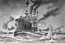 After the outbreak of World War I in July 1914, Ariadne was recommissioned on 2 August for use as a flotilla leader for the coastal defense torpedo boat flotillas that guarded the mouths of the Jade and Weser rivers. The ships were tasked with protecting these important waterways from attacks by enemy warships. Her commander was Kapitän zur See (Captain at Sea) Hans Seebohm.[3][4]