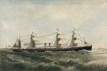 Britannic was a single-screw passenger steamship equipped with sails built for the White Star Line's North Atlantic run. It was initially to be called Hellenic, but, just prior to her launch, her name was changed to Britannic. Together with her sister Germanic, Britannic sailed for nearly thirty years, primarily carrying immigrant passengers on the highly trafficked Liverpool to New York City route. In 1876 it received the Blue Riband, both westbound and eastbound, by averaging almost 16 knots (30 km/h).