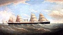 She departed on her maiden voyage on 20 May 1875 from Liverpool to New York, arriving ten days later.[3] In doing so, she replaced Oceanic, the White Star's first post-Ismay steamship that was placed on charter by the company in the same year.[2]