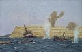 Unwin beached River Clyde at V Beach beneath the Sedd el Bahr castle, on the tip of the Gallipoli peninsula. The plan failed and the River Clyde, beached under the guns of the Turkish defenders, became a death trap. Three attempts to land made by companies of Munsters, Royal Dublins and Hampshires all ended in costly failure. Further landing attempts were abandoned and the surviving soldiers waited until nightfall before trying again.