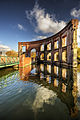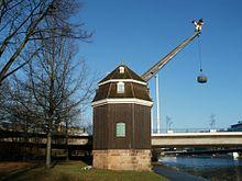 From the 1st century AD to the 5th century,[12] there was the Gallo-Roman settlement called vicus Saravus west of Saarbrücken's Halberg hill,[13] on the roads from Metz to Worms and from Trier to Strasbourg.[10] Since the 1st or 2nd century AD,[10] a wooden bridge, later upgraded to stone,[9] connected vicus Saravus with the south-western bank of the Saar, today's St Arnual, where at least one Roman villa was located.[14] In the 3rd century AD, a Mithras shrine was built in a cave in Halberg hill, on the eastern bank of the Saar river, next to today's old "Osthafen" harbor,[15] and a small Roman camp was constructed at the foot of Halberg hill[13] next to the river.[12]
