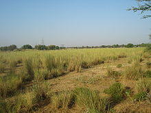 Saccharum munja, known as munja (Hindi: मुंज) is a grass found in arid areas and along river banks in India. it belongs to the family Gramineae. It grows up to 2 meters (7 feet) in height. Its white flowers are of ornamental value.