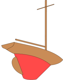 Ballast takes many forms. The simplest form of ballast used in small day sailers is so-called "live ballast", or the weight of the crew. By sitting on the windward side of the hull, the heeling moment must lift the weight of the crew. On more advanced racing boats, a wire harness called a trapeze is used to allow the crew to hang completely over the side of the hull without falling out; this provides much larger amounts of righting moment due to the larger leverage of the crew's weight, but can be dangerous if the wind suddenly dies, as the sudden loss of heeling moment can dump the crew in the water. On larger modern vessels, the keel is made of or filled with a high density material, such as concrete, iron, or lead. By placing the weight as low as possible (often in a large bulb at the bottom of the keel) the maximum righting moment can be extracted from the given mass. Traditional forms of ballast carried inside the hull were stones or sand.