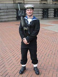 In the Royal Navy, the sailor suit, also called naval rig,[1] is known as Number One dress and is worn by able rates and leading hands. It is primarily ceremonial, although it dates from the old working rig of Royal Navy sailors which has continuously evolved since its first introduction in 1857.[2] Versions have been adopted by many navies from around the world.