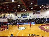 The Daniel Lynch Gymnasium is the centerpiece of The Pope and it hosts the NCAA Division I Men's and Women's Basketball games.[26] The Gymnasium has a capacity of 1,200 seats. The teams play on Peter Aquilone Court, which was named after Peter Aquilone, the son of former Athletic Director and St. Francis alumnus Edward Aquilone, ’60.[26] The court was dedicated to Peter Aquilone on December 1, 2004, after he died.[27] The Gymnasium is named after alumnus Daniel J. Lynch, who coached the Terriers for 21 years and led them to 3 Regular Season Conference Championship wins and is the All-Time Terrier Coach wins leader.