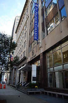 As the U.S. moved closer to its entrance into World War II, 240 students were enrolled at St. Francis.[4] While the student body remained mostly Irish, the changing demographics of working class Brooklyn were reflected by the growing number of Italian-American students. By the spring semester of 1944, when the war was at its peak, the number of students enrolled dropped to 45. Most of those still enrolled were members of the Franciscan order and those exempt from military service (12 SFC students gave their lives to the war effort). After the War and with the passage of the G.I. Bill, which paid tuition for returning soldiers, enrollment at St. Francis increased to 878 students.[4] In 1957, the Regents of the University of the State of New York granted an absolute Charter to the Trustees of the College making it a separate legal entity from the St. Francis Monastery. The new corporate status enabled St. Francis students to qualify for federal financial aid. Shortly after, in 1959, the Middle States Commission on Higher Education accredited St. Francis College.[4] After these developments the College embarked on an expansion program, in 1960 it was announced that five office buildings in the Brooklyn Civic Center were purchased for $5 million from the Brooklyn Union Gas Company.[9] In 1961, the college purchased the Herman Behr Mansion in Brooklyn Heights to serve as a residence for the Franciscan Brothers and signaled the move from Cobble Hill to Brooklyn Heights.[10]