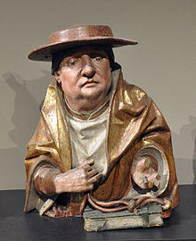 Jerome is often depicted in connection with the vanitas motif, the reflection on the meaninglessness of earthly life and the transient nature of all earthly goods and pursuits. In the 16th century Saint Jerome in his study by Pieter Coecke van Aelst and workshop, the saint is depicted with a skull. Behind him on the wall is pinned an admonition, Cogita Mori ("Think upon death"). Further reminders of the vanitas motif of the passage of time and the imminence of death are the image of the Last Judgment visible in the saint's Bible, the candle and the hourglass.[57]