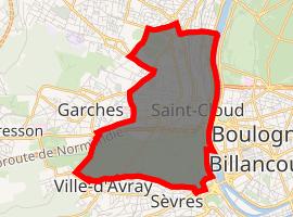 Saint-Cloud (French pronunciation: [sɛ̃ klu]) is a commune in the western suburbs of Paris, France, 9.6 kilometres (6.0 miles) from the centre of Paris. Like other communes of Hauts-de-Seine such as Marnes-la-Coquette, Neuilly-sur-Seine and Vaucresson, Saint-Cloud is one of France's wealthiest towns, ranked second in average household income among communities with 10- to 50-thousand tax households.[2] In 2006, it had a population of 29,981.