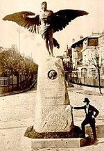 On the Avenue de Longchamp is a bronze statue commissioned by the Airclub of France representing the Greek mythologic figure Icarus, in honour of Santos Dumont. It was inaugurated on October 19, 1913, and is on a square near the old Aerostation of Saint-Cloud, where Santos Dumont performed his experiments with the heavier than air. Dumont was also responsible for the construction of the world's first hangar in Saint-Cloud. Today there is a replica of it in the same place, erected in 1952, because the original was destroyed for its bronze during the Nazi military occupation.
