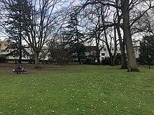 Just to the south of Alderbury Junction, where the abandoned Salisbury and Dorset Junction Railway left the line to Salisbury, the canal turned to the south-west, to avoid the high ground on which Alderbury stands. The A36 Alderbury bypass has in its turn obliterated part of the railway near the junction. The canal looped around ending at a road called Tunnel Hill,[25][28] close to Alderbury House, a grade II* listed country house on the western edge of Alderbury, which was built in the late eighteenth century.[32] A lake in the grounds is thought to have been built as part of the canal, and Tunnel Hill may reflect the fact that there would have been a tunnel just past the road, if the company had been able to finish the construction.[33] The route of this final section is not easy to trace on a map, but it was not clearly defined on the 1881 map either,[34] and there is some uncertainty about what was completed before all work ceased. Another feature of the canal was the feeder reservoirs. One remains, above the road from Alderbury to Farley at Pope's Bottom. The feeder passes under the road through an original bridge. A second reservoir was located to the south of the road,[33] and although no longer there, its outline broadly follows a gap in the tree cover on the modern map.[25]