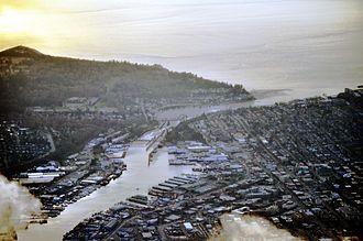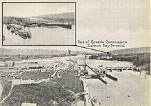 Salmon Bay is a portion of the Lake Washington Ship Canal, which passes through the city of Seattle, linking Lake Washington to Puget Sound, lying west of the Fremont Cut. It is the westernmost section of the canal and empties into Puget Sound's Shilshole Bay. Because of the Hiram M. Chittenden Locks, the smaller, western half of the bay is salt water, and the eastern half is fresh water (though not without saline contamination: see Lake Union). Before the construction of the Ship Canal, Salmon Bay was entirely salt water.