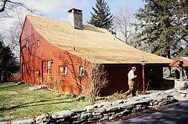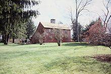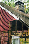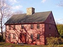 The saltbox originated in New England and is an example of American colonial architecture. Folklore holds that the saltbox form was popularized by Queen Anne's taxation of houses greater than one story. Since the rear of the roof descended to the height of a single-story building, the structure was exempt from the tax.[1] Actually, the saltbox shape evolved organically from the need for additional space for growing families; adding a lean-to was an economical way to enlarge the house. All but two of the examples below predate Queen Anne.