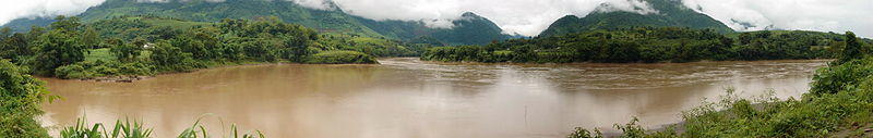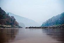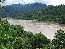 Further south, the river enters Karen State (Kayin State) and forms the border between Burma and Thailand for about 120 kilometres (75 mi).[13] In Thailand the river is known as Salawin; much of the Thai side of the border is part of Salawin National Park and the Salawin Wildlife Sanctuary. At the south end of the border section it is joined by the northwest-flowing Moei River, which forms the Burma–Thailand border south of this point.[4] In Karen State, the river flows through karst limestone hills where numerous caves and unusual rock formations line the banks, particularly around the city of Hpa-An.[14][15]