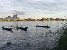 In Shan State and Karenni State (Kayah State) the river is joined by several large tributaries, including the Nanding River and Hka River from the east, and the Pang, Teng, and Pawn Rivers from the west.[4] The Pang River is noted for its extensive limestone formations near the confluence with the Salween, where it breaks into a myriad of cataracts, channels and islets known as Kun Heng, "Thousand Islands".[5][12] Inle Lake, the second largest lake in Burma and a World Biosphere Reserve, drains into the Salween by way of the Pawn River.[6]