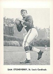 Etcheverry was the son of Basque sheep farmers who emigrated to New Mexico.[3] Known as "The Rifle", Etcheverry played for the University of Denver from 1949 to 1951 where he still holds most of the Pioneers' football records for passing offense.