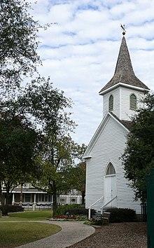 St. John Church was originally built in northwest Harris County. The 1891 building was relocated to Sam Houston Park in 1968. Though originally serving German Lutherans, the architectural style was typical of churchs of the American South. Its footprint is rectangular and has a gabled roof with a bell tower.[8]
