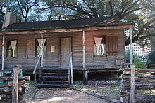 The Old Place is a log cabin probably built by John R. Williams, an Austin colonist, about 1823, and thought to be the oldest remaining structure in Harris County.[4] It was moved from its original location on the west bank of Clear Creek in 1973 and remained at the west edge of the Park, on the shore of the pond, until September 2003, when it was relocated to higher ground on the east side of the Park.[5] Rising waters from Buffalo Bayou had flooded the building numerous times over the years, and during Tropical Storm Allison in June 2001, floodwaters reached the roof.[6]