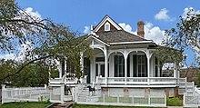 While the Old Place is the oldest building in Sam Houston Park, the Kellum-Noble House is the oldest extant building in Houston. Part of its name is taken from Nathaniel Kellum, who built the house in 1847.[7] Nathaniel Kellum built the house adjacent to his brickyard. The house is constructed with two chambers (a "double-pen") separated by a breezeway, and the house is encircled by its double gallery. The City of Houston acquired the house as part of the purchase of land for the park in 1899. The Harris County Heritage Society saved the building in 1954 and commissioned its renovation by Harvin C. Moore before opening it as a county museum four years later.[8]