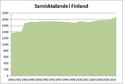 The Proto-Samic language is believed to have formed in the vicinity of the Gulf of Finland between 1000 BC to 700 AD, deriving from a common Proto-Sami-Finnic language (M. Korhonen 1981).[17] However, reconstruction of any basic proto-languages in the Uralic family have reached a level close to or identical to Proto-Uralic (Salminen 1999).[18] According to the comparative linguist Ante Aikio, the Proto-Samic language developed in South Finland or in Karelia around 2000–2500 years ago, spreading then to northern Fennoscandia.[19] The language is believed to have expanded west and north into Fennoscandia during the Nordic Iron Age, reaching central Scandinavia during the Proto-Scandinavian period ca. 500 AD (Bergsland 1996).[20] The language assimilated several layers of unknown Paleo-European languages from the early hunter-gatherers, first during the Proto-Sami phase and second in the subsequent expansion of the language in the west and the north of Fennoscandia that is part of modern Sami today. (Aikio 2004, Aikio 2006).[19][21]