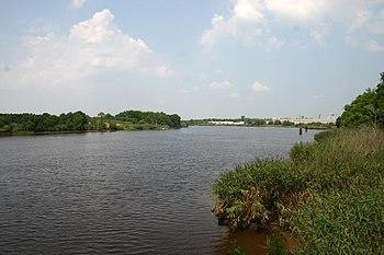 The Sampit River begins in a swampy area of western Georgetown County, South Carolina, USA. It flows in an easterly direction to Winyah Bay at Georgetown. Only small crafts can navigate the upper parts of the river. The lower river merges into the bay and is deepened by tidal flows, and (to Georgetown harbor) by dredging.