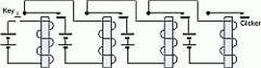 The Supreme Court sustained, however, Morse's claim to such telecommunication when effectuated by means of Morse's inventive "repeater" apparatus. This was an electrical circuit in which a cascade of many sets comprising a relay and a battery were connected in series, so that when each relay closed, it closed a circuit to cause the next battery to power the succeeding relay, as suggested in the accompanying figure. This caused Morse's signal to pass along the cascade without degrading into noise as its amplitude decreased with the distance traveled. (Each time the amplitude of the signal approaches the noise level, the repeater [in effect, a nonlinear amplifier] boosts the signal amplitude well above the noise level.) This use of "repeaters" permitted a message to be sent to great distances, which was previously not feasible.
