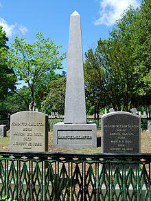 In 1791, Slater married Hannah Wilkinson; she invented two-ply thread, becoming in 1793 the first American woman to be granted a patent.[12] Samuel and Hannah had 10 children together, although four died during infancy. Hannah died in 1812 from complications of childbirth, leaving Samuel with six young children to raise.[13] Along with his brother, Samuel started the Slater family in America.