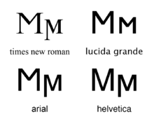 In modern editions and transcriptions of ancient Greek writing, San has rarely been used as a separate letter. Since it never contrasts systematically with Sigma except in abecedaria, it is usually silently regularized to Sigma in modern editorial practice.[10] In the electronic encoding standard Unicode, a pair of uppercase and lowercase forms of the letter was introduced in version 4.0 (2003).[11] For this purpose, new lowercase forms for modern typography, for which no prior typographic tradition existed, had to be designed.[12] Most fonts have adopted the convention of distinguishing uppercase San from Mu by having its central V-like section descend only halfway down above the baseline, and lowercase San by giving it a left stem descending below the baseline. (Note that in historical epigraphic practice it was the other way round, with San being symmetrical and Mu having a longer left stem.)