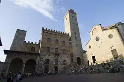 The Communal Palace, once seat of the podestà, is currently home of the town gallery, with works by Pinturicchio, Benozzo Gozzoli, Filippino Lippi, Domenico di Michelino, Pier Francesco Fiorentino and others. From Dante's Hall in the palace, access may be made to a Maesta fresco by Lippo Memmi, as well as the Torre del Podestà or Torre Grossa, 1311, which stands 54 metres (177 ft) high.[15]