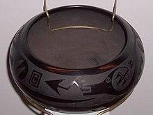 San Ildefonso Pueblo (Tewa: P'ohwhóge Owingeh [p’òhxʷógè ʔówîŋgè] "where the water cuts through"[2][3]) is a census-designated place (CDP) in Santa Fe County, New Mexico, United States, and a federally recognized tribe, established c. 1300 C.E.[4] The Pueblo is self-governing and is part of the Santa Fe, New Mexico Metropolitan Statistical Area. The population was 524 as of the 2010 census,[5] reported by the State of New Mexico as 1,524 in 2012,[6] and there were 628 enrolled tribal members reported as of 2012 according to the Department of the Interior.[7] San Ildefonso Pueblo is a member of the Eight Northern Pueblos, and the pueblo people are from the Tewa ethnic group of Native Americans, who speak the Tewa language.