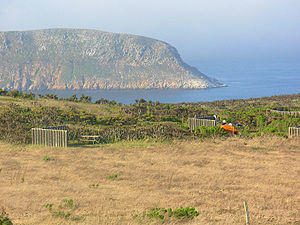 San Miguel Island, together with numerous small islets around it, is defined by the United States Census Bureau as Block 3010, Block Group 3, Census Tract 29.10 of Santa Barbara County, California. The island is uninhabited.[2][3] Highest peak is San Miguel Hill, at 831 feet (253 m). Submerged rocks make the nearly 28-mile (45 km) coastline a mariner's nightmare.
