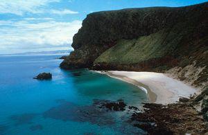 San Miguel Island is part of Channel Islands National Park, and almost all of the island (8,960 acres (36.3 km2)) has also been designated as an archaeological district on the National Register of Historic Places. This westernmost Channel Island receives northwesterly winds and severe weather from the open ocean. The cold and nutrient-rich water surrounding the island is home to a diverse array of sea life that is not found on the southern islands.