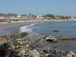 San Patricio - Melaque in the Mexican state of Jalisco is a busy community located 4+ kilometers northwest of Barra de Navidad on Bahia de Navidad. The area comprises two beachfront villages: San Patricio - Melaque and Villa Obregon all generally referred to as "Melaque." The small village of Melaque has been a vacation retreat for Mexicans for generations. San Patricio - Melaque, a kilometer long strip on the west end of the bay, is named after the Ejido San Patricio and before that a small Rancho named San Patricio. Downtown Melaque contains a colorful town square, many retail shops, two banks, many restaurants and a few hardware stores. Villa Obregon, to the east, is much more residential. The two areas of San Patricio - Melaque and Villa Obregon form the largest community along the coast between Puerto Vallarta and Cihuatlan. Playa Melaque is the main beach in the area and good for swimming, bodyboarding, and skimboarding. The west end of Melaque beach is protected from the large swells found elsewhere on the beach, allowing for swimming for children and the less adventurous.
