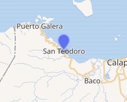 San Teodoro is 32 kilometres (20 mi) west of the province's capital, Calapan, 19 kilometres (12 mi) east from Puerto Galera, and about 140 kilometres (87 mi) south of Philippine capital Manila. It is located on the northern part of Oriental Mindoro. It is bounded to the north by the Verde Island Passage, to the east by Baco, to the west by Puerto Galera, and to the south by Santa Cruz in Occidental Mindoro province.